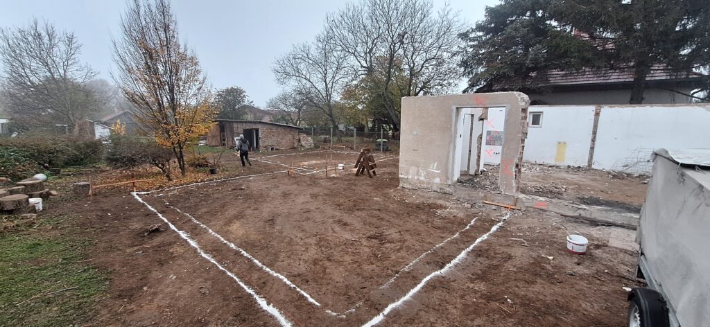 Majd jöhetett a sík kialakítás és a kitűzés földmérővel
