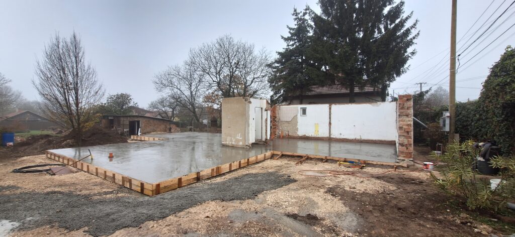 Közel 200m2 betonlemez lehúzása a délelőtt folyamán